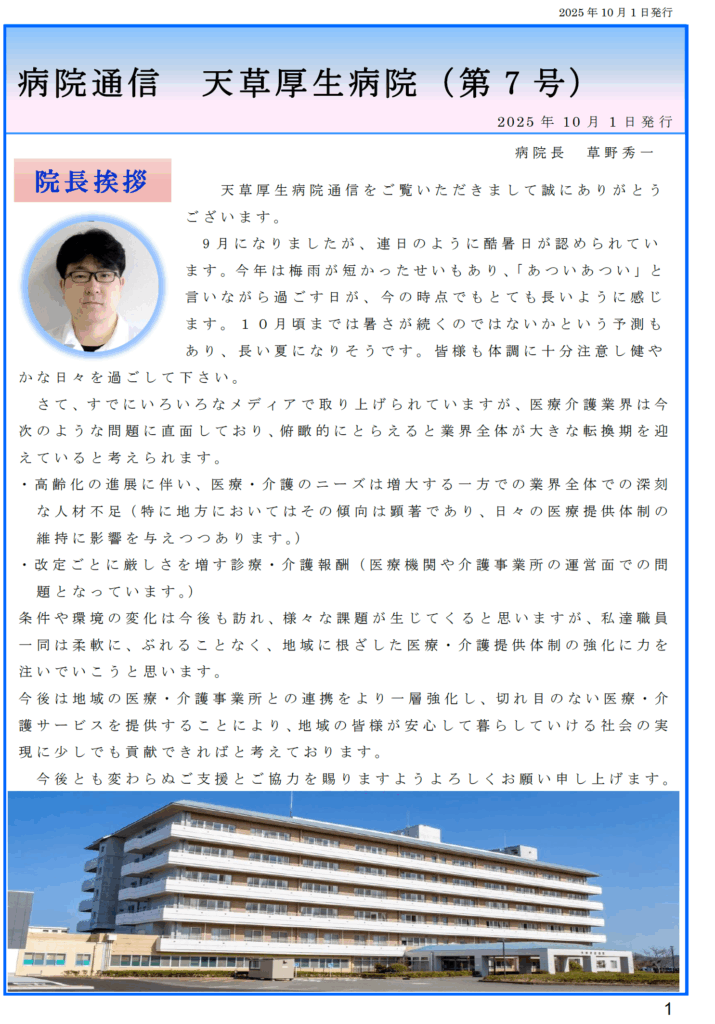 天草厚生病院病院通信 天草厚生病院(第7号)2025.10.01
