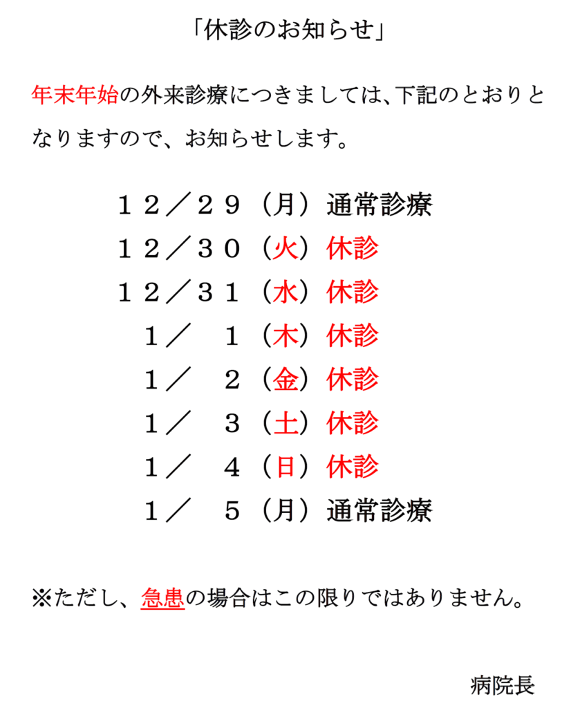 年末年始休診のお知らせ