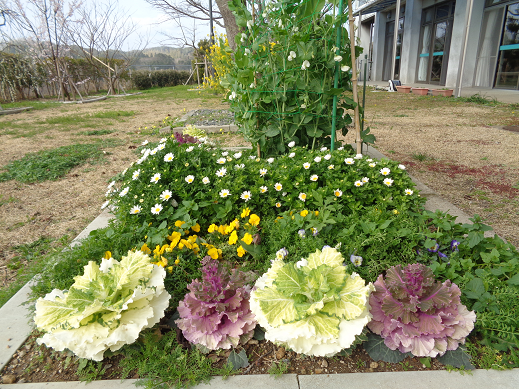ケアハウスかんな中庭の花壇2025.03.14
