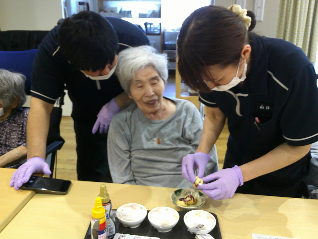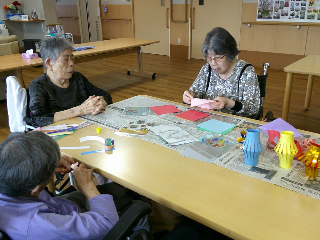 今年は例年より梅雨に入るのも明けるのも早かったために、7月になり、すでに猛暑が続いています。サザンテラス五和では、毎月様々な余暇活動を行っていますので、一部紹介いたします。暑さに負けまいと入居者の皆様は元気に参加されています。おやつ作りは一番人気があって試食が賑わいます。作品作りや歌も楽しんでおられます。今後は踊りや音楽もボランティアさんにより披露して頂く予定です。どうぞお気軽に施設見学にいらして下さい。お待ちしております。